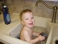 They're eager to make him a big boy; I'm holding on to my baby. Big boys don't take baths in the kitchen sink now do they?